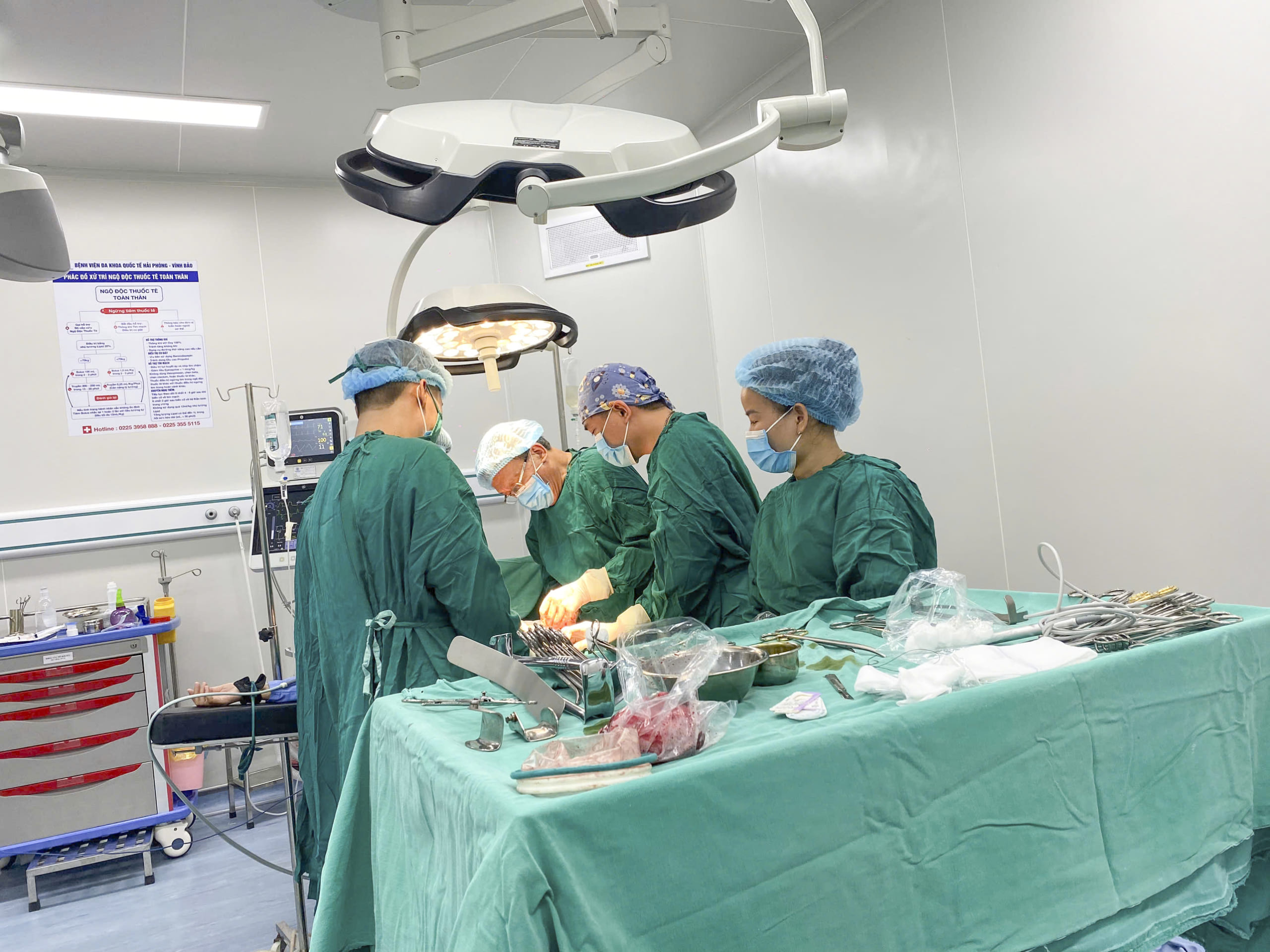 Đơn nguyên Ngoại Tiêu hóa – Tiết niệu, Bệnh viện Đa khoa Quốc tế Hải Phòng – Vĩnh Bảo cung cấp dịch vụ chuyên nghiệp và toàn diện trong lĩnh vực điều trị ngoại tiêu hóa – tiết niệu cho người lớn và trẻ em. Một số phẫu thuật điển hình như: Phẫu thuật cắt ruột thừa, điều trị tắc ruột; Cắt túi mật, lấy sỏi đường mật; Khâu lỗ thủng: Dạ dày – tá tràng – ruột non – đại tràng; Phẫu thuật Thoát vị bẹn, đùi, thành bụng,…sử dụng tấm lưới chuyên dụng; Điều trị u lành tính; Phẫu thuật ung thư… Tán sỏi ống cứng, tán sỏi ống mềm, tán sỏi qua da; Thắt tĩnh mạch tinh; Cắt u bàng quang – cắt u tiền liệt tuyến; Các bệnh lý nam khoa…