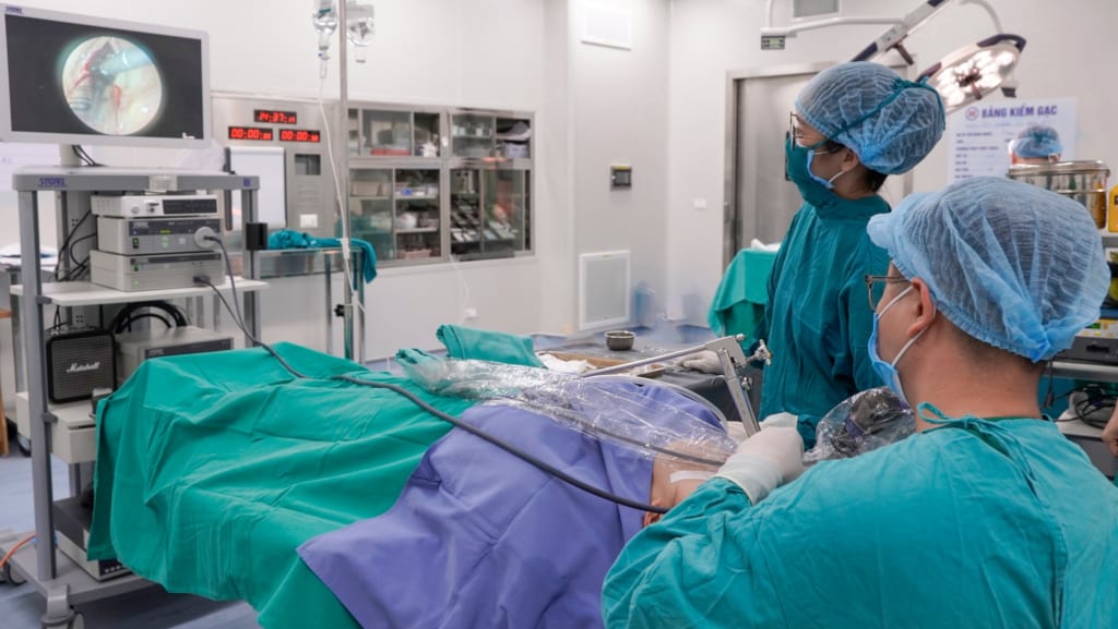 Sau khi hội chẩn, các bác sĩ chỉ định phẫu thuật nội soi vi phẫu thanh quản cắt hạt xơ dây thanh – một kỹ thuật cao, đòi hỏi sự tỉ mỉ và chính xác tuyệt đối trong từng thao tác. Nhờ hệ thống nội soi hiện đại, bác sĩ có thể quan sát rõ cấu trúc dây thanh, loại bỏ triệt để tổn thương mà vẫn bảo tồn tối đa chức năng phát âm cho người bệnh. Ca mổ diễn ra thuận lợi, bệnh nhân hồi phục nhanh, giọng nói dần trở lại bình thường, không còn cảm giác vướng, khó thở.