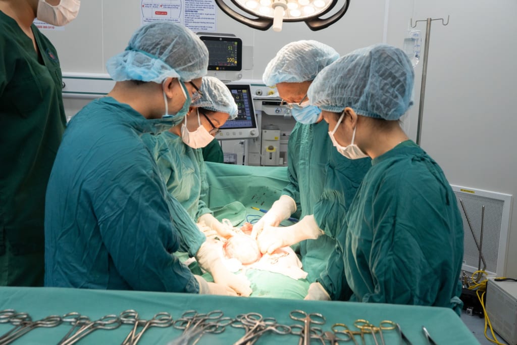 Qua thăm khám và chẩn đoán, bệnh nhân được xác định có khối u xơ tử cung biến chứng đau, cường kinh, rong kinh kéo dài, tử cung to tương đương thai 3 tháng, kèm khối u nang buồng trứng trái. Các bác sĩ đã chỉ định phẫu thuật cắt tử cung bán phần, bảo tồn hai phần phụ và xử trí khối u buồng trứng trái. Do tình trạng thiếu máu nặng, bệnh nhân đã được truyền máu trước mổ để đảm bảo an toàn phẫu thuật, đồng thời tiếp tục theo dõi và truyền máu bổ sung sau mổ. Ca mổ diễn ra thuận lợi, kiểm soát tốt chảy máu. Sau mổ, bệnh nhân tỉnh táo, vết mổ khô, bụng mềm, phục hồi tốt.
